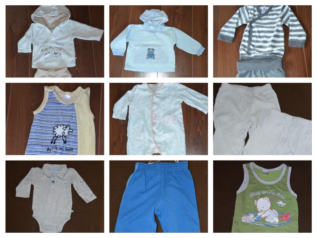 2xsúprava, 1xmikina s kapucňou, 2xdupačky, 1xdupačky bez rukávov, 7xnohavice, 1xbody s dlhým rukávom, 3xbody s kr. rukávom, 1xbody bez rukávov