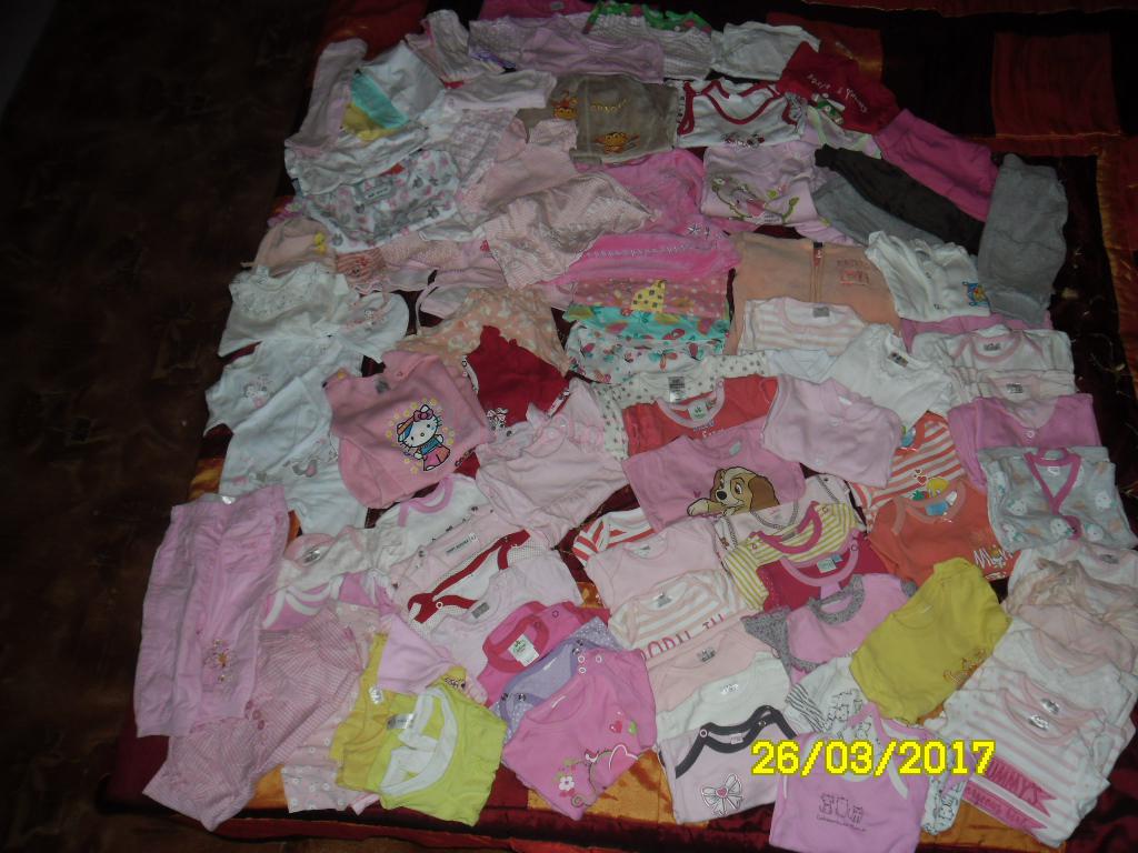 Predám novorodenecké dievčenské oblečenie od 0 do 6.mes..od leta do zimy. Body s krátkym a dlhým rukávom, tepláčiky,čapičky letne a zímné,letné overalíky a prechodný overal, zimný overal, body šaty, trigovicka, tričká s krátkym a dlhým rukávom, overaly na spanie, overal na zapínanie na ramienka bez rukávov, kabátiky ...